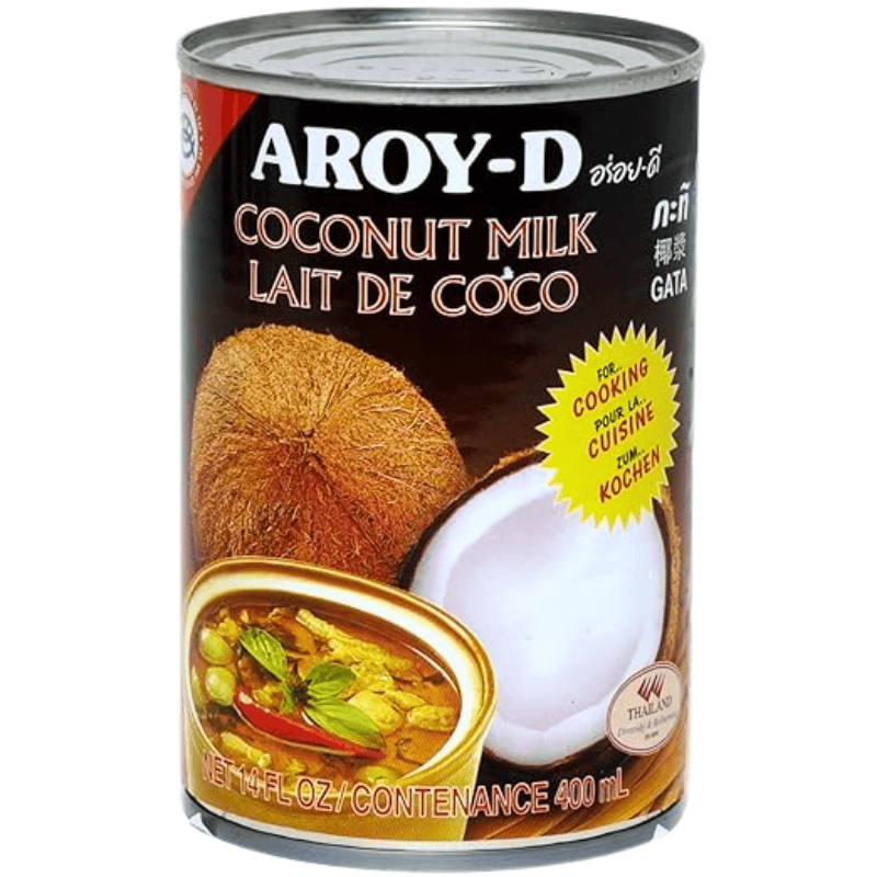 Aroy-D kokosmelk til matlaging 400ml. Kremet og naturlig kokosmelk uten tilsetningsstoffer, perfekt til curry, wok, supper, gryter og marinader. Gir rik kokossmak, silkemyk konsistens og et autentisk preg i asiatisk matlaging.