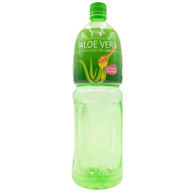 Chin Chin Aloe Vera drikk 1,5L. Forfriskende og lett søt drikk med ekte aloe-vera-biter. Perfekt som tørsteslukker og kjent for sin milde, naturlige smak.