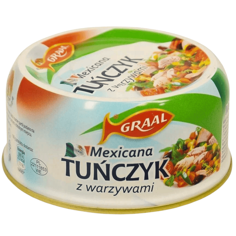 Graal Mexicana tunfisk med grønnsaker 280g. Smakfull tunfiskblanding med grønnsaker i Mexicana-stil, lett krydret for fyldig og balansert smak. Perfekt som pålegg, i salater, wraps eller som rask og mettende rett. Klar til bruk og rik på protein.