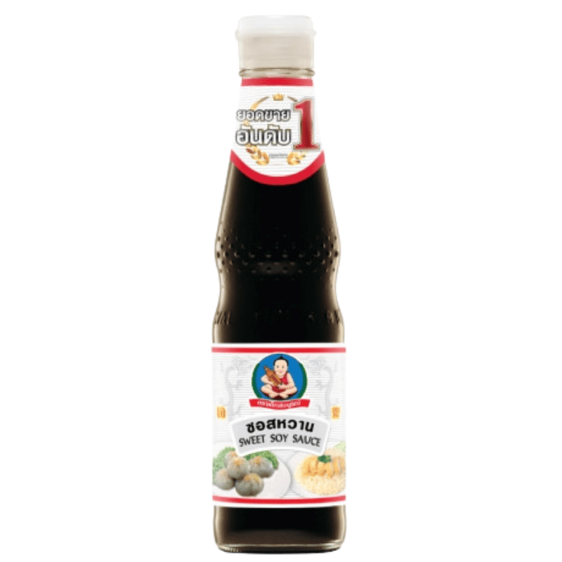 Healthy Boy sweet soya sauce 420g. Thailandsk søt soyasaus med tykk konsistens og balansert smak av sødme og umami. Perfekt til wok, nudler, risretter, marinader og som glaze til kjøtt, kylling og grønnsaker. Gir fin karamellisering og autentisk asiatisk smak.
