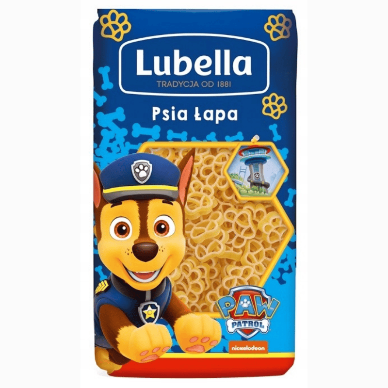 Lubella Dog’s Paw pasta 350g har unike former som hundepoter, laget av kvalitetsdurumhvete. Perfekt for å gjøre middagen mer spennende for både barn og voksne.