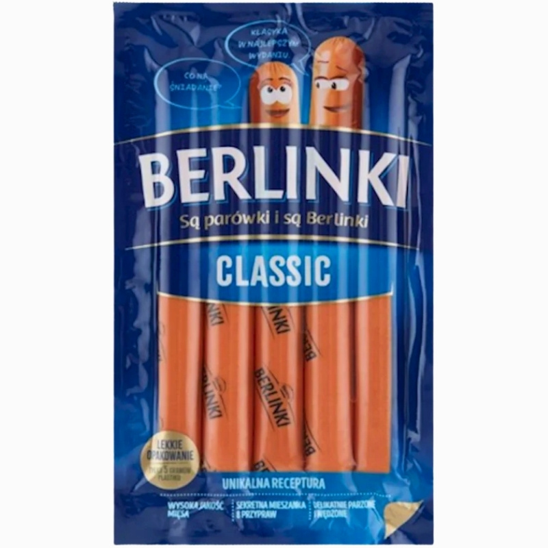 Morliny Berlinki Classic Wieners 250g. Klassiske og smakfulle pølser, perfekte til hverdagsmiddager, frokost eller som snacks.