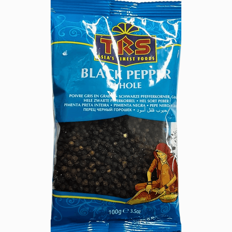 Hele, sorterte svarte pepperkorn med kraftig og aromatisk smak – uunnværlig i daglig matlaging. Ideell for kverning eller bruk i gryter, supper og marinader. Vekt: 100 g.