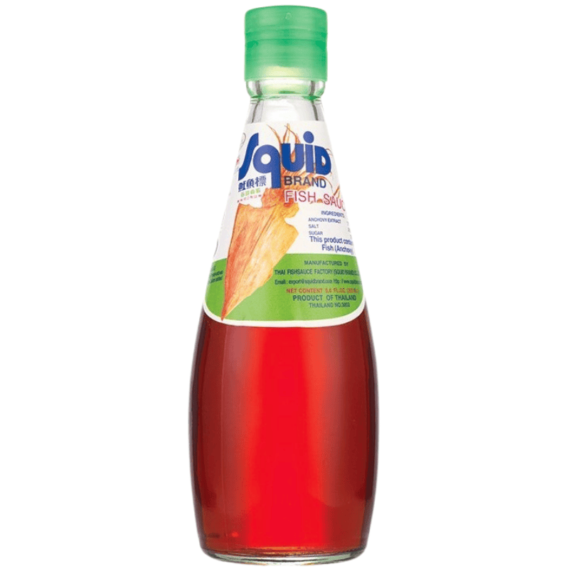 Squid fish sauce 300ml i glassflaske. Tradisjonell thailandsk fiskesaus laget av fermentert fisk, kjent for sin rene og balanserte umamismak. Perfekt til wok, curry, nudler, supper, salater og marinader, samt som bordsaus for autentisk asiatisk smak.