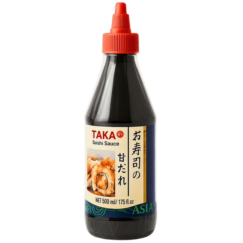 Takao sushi saus 510g. Ferdigblandet japansk saus med balansert sødme og umami, utviklet for bruk til sushi og risretter. Perfekt som topping på maki og nigiri, til poke bowls eller som dip til japanske retter. Gir jevn smak og blank finish, spesielt godt egnet også for større husholdninger og servering.