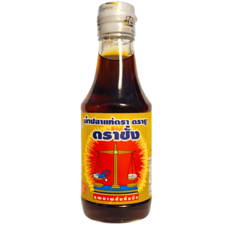 Tra Chang fish sauce 200ml (Scale). Tradisjonell thailandsk fiskesaus med karakteristisk umamismak, laget av fermentert fisk. Perfekt til wok, curry, nudler, supper, salater og marinader. Praktisk liten flaske som passer godt til daglig bruk og bordservering.