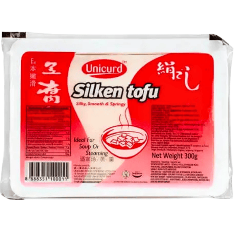Unicurd T1 silken tofu (suppe) 300g. Ekstra myk silketofu utviklet spesielt for supper, med glatt og delikat konsistens som smelter lett i varme retter. Egner seg godt til misosuppe, klare supper, hot pot og andre asiatiske retter hvor tofu skal være lett og silkemyk.