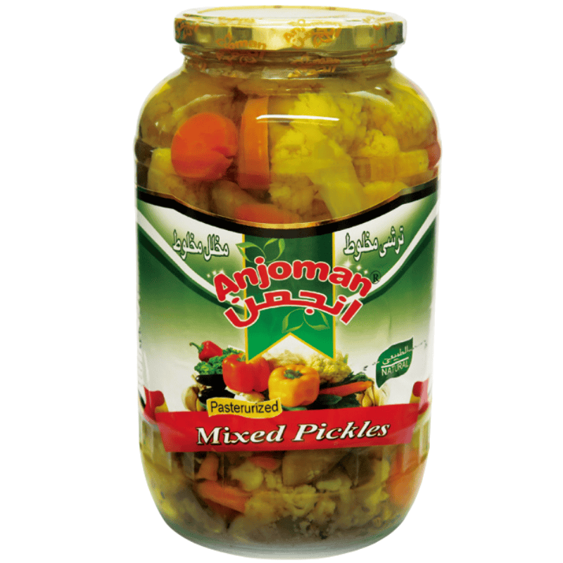Anjoman Mix Veg 1700g. Blanding av syltede grønnsaker konservert i lake med aromatiske krydder. Gir en balansert kombinasjon av syrlighet og krydret smak, perfekt som tilbehør til risretter, grillmat, kebab og tradisjonelle mellomøstlige måltider. Storpakning.