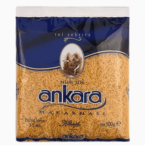 Ankara Tel Sheriye/Filini 500g er en tynn, sprø pasta som brukes mye i tyrkiske supper og gryteretter. Perfekt for autentiske retter med rik smak.