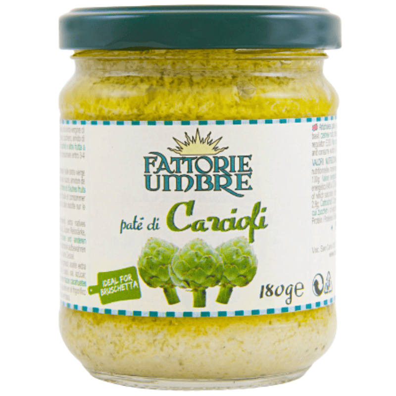Fattorie Umbre artisjokk pasta 180g. Kremet pålegg og pastasaus laget av artisjokk, med fyldig og aromatisk middelhavssmak. Passer godt på bruschetta, i pasta, som dip eller som smakstilsetning i sauser og antipasti.