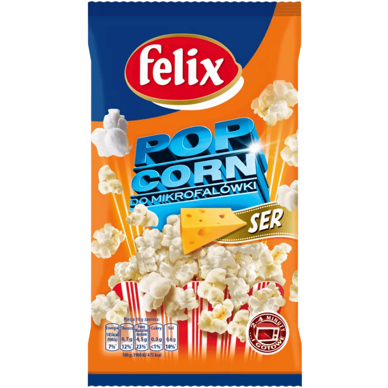 Felix popcorn ostesmak 90g. Sprø popcorn med fyldig ostekrydder som gir en rik og aromatisk smak. Passer godt til filmkvelder, snacksservering eller som et salt alternativ til søt popcorn.
