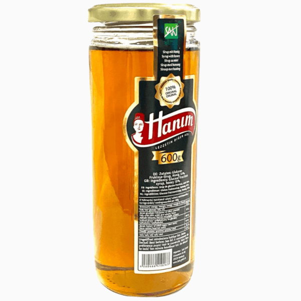 Hanim Honning Kam Syrup 600g er ren og naturlig honning med ekte vokskam i sirup. Et smakfullt og sunt valg rikt på enzymer og næringsstoffer – perfekt til frokost, te eller som naturlig søtning.