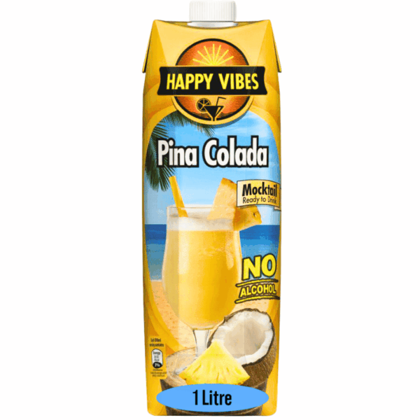 Happy Vibes Piña Colada 1L. Alkoholfri tropisk drikk med klassisk smak av ananas og kokos. Klar til servering og perfekt som forfriskende mocktail, til fest, sommerdager eller som base i kreative drinker. Serveres best godt avkjølt eller med is.