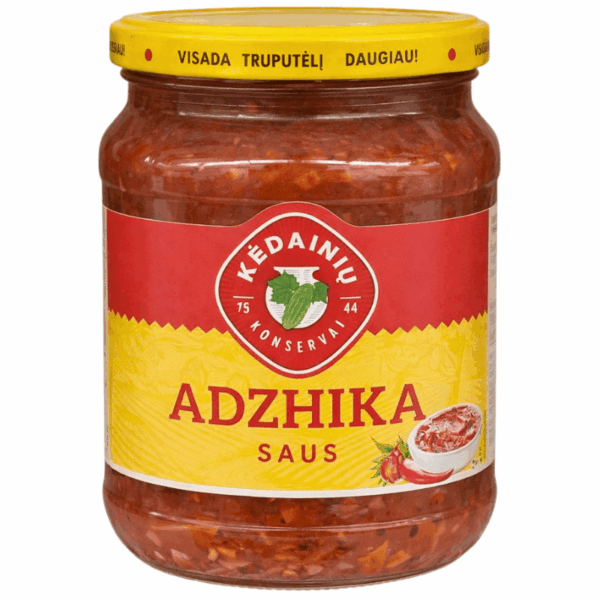 Kedainiu adzika 260g. Tradisjonell krydret kaukasisk saus basert på paprika, chili, hvitløk og urter, med intens og aromatisk smak. Passer godt til kjøttretter, grillmat, pølser og som smakstilsetning i varme og kalde retter.