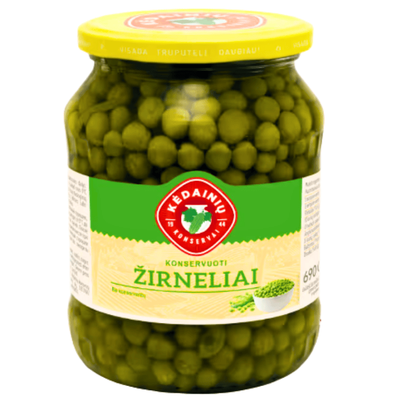 Kedainiu grønne erter 690g. Møre og smakfulle grønne erter med naturlig sødme og fast konsistens. Egner seg godt som tilbehør til middagsretter, i salater, supper og varme retter. Klar til bruk og praktisk i hverdagsmat.