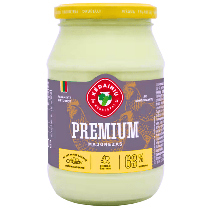 Kedainiu majones premium 430g. Premium majones med ekstra kremet konsistens og rik, balansert smak. Egner seg godt til salater, smørbrød, burgere, pommes frites og som base for dressinger og sauser.