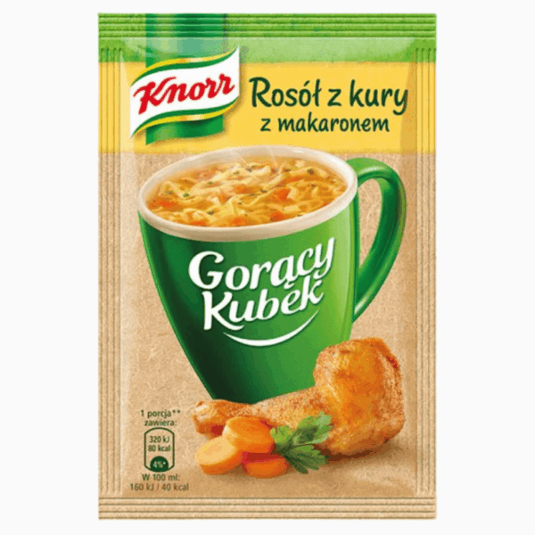 Knorr GK Rosol Z Kury suppe 12g gir en rik og autentisk kyllingsmak som forbedrer dine supper og sauser. Enkel å bruke og perfekt for hjemmelagde retter.