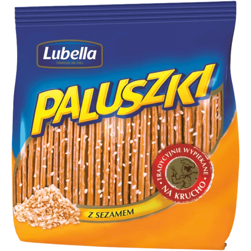 Lubella sticks med sesam 220g. Sprø bakte saltstenger toppet med sesamfrø som gir en lett nøtteaktig smak. Passer godt som snacks, til dip, eller som tilbehør til supper og salater.