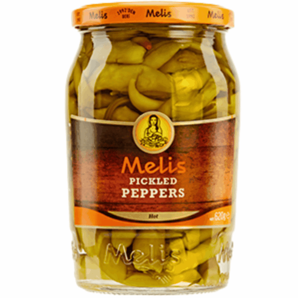 Melis mild pickled pepper (feferoni) 600g. Milde feferonipepper konservert i lake, med frisk syrlighet og lett krydret smak uten sterk hete. Passer godt til grillretter, salater, smørbrød og som tilbehør til både varme og kalde retter.