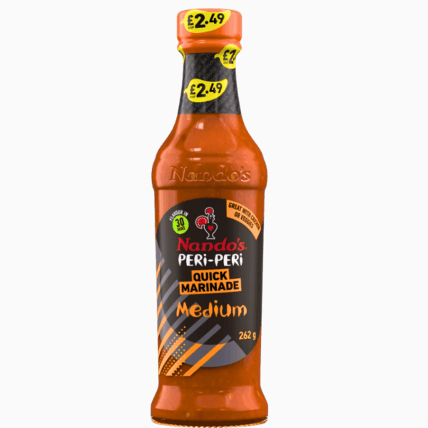 Aromatisk Peri-Peri marinade saus fra Nando’s, ideell til grilling og marinering av kylling og kjøtt. Gir fyldig og krydret smak. Vekt: 262g