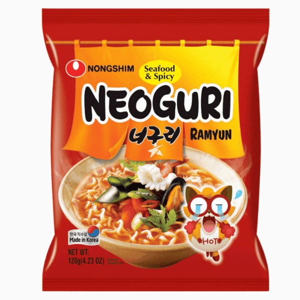 Neoguri Seafood Ramyun byr på en rik sjømatbuljong med tykke, myke nudler. Perfekt for deg som elsker koreansk sjømatnudelsuppe. Innhold: 125g.
