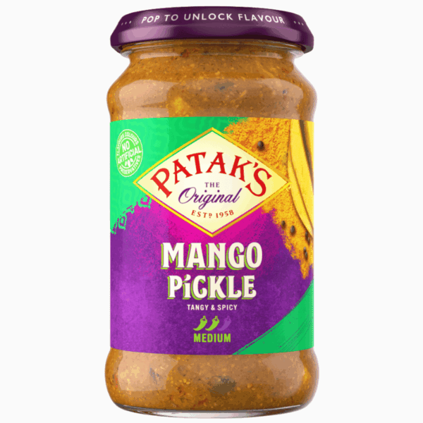 Smaksrik mango pickle med middels styrke – passer perfekt som tilbehør til curry, ris og naan.