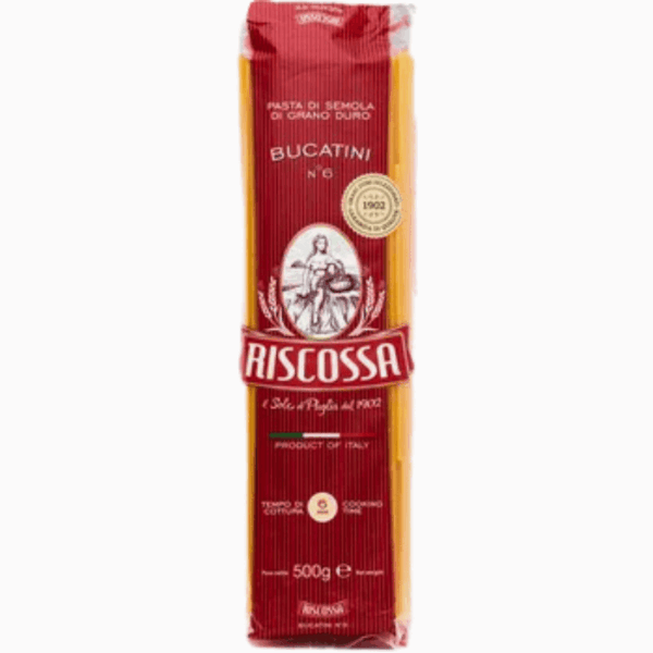 Riscossa Bucatini 6 500g er en klassisk italiensk pasta med hul sylinderform, som gir perfekt tekstur i sauser og gryteretter.