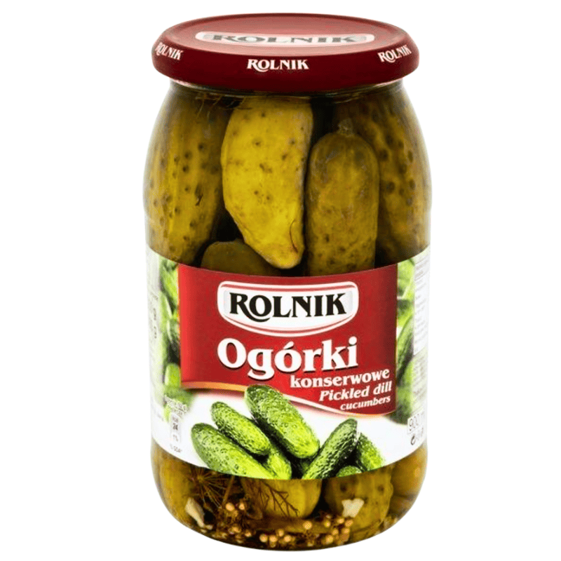 Rolnik agurk konserwowe 900ml. Klassiske polske syltede agurker med sprø konsistens og balansert søt-syrlig smak. Perfekt som tilbehør til middagsretter, pølser, burgere, smørbrød og grillmat, eller som ingrediens i salater og tradisjonelle østeuropeiske retter. Klar til servering.