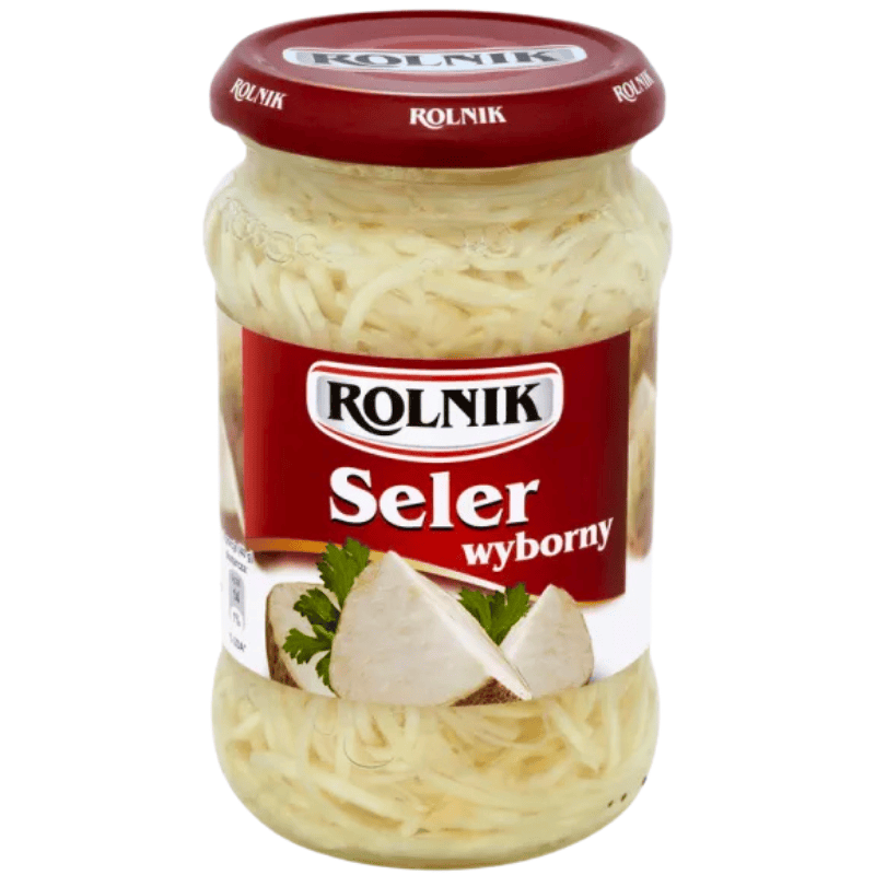 Rolnik selleri 370ml. Skivet selleri konservert i aromatisk lake med frisk og lett syrlig smak. Egner seg godt som tilbehør til kjøttretter, salater, smørbrød og kalde retter. Klar til bruk.