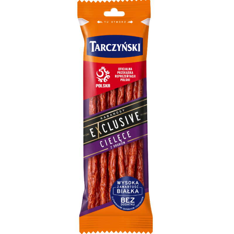 Tarczynski kabanos “Drobiowy” 90g. Smakfulle kabanospølser laget av fjørfekjøtt, med mild krydring og fast konsistens. Perfekt som lett snack, i matpakken eller på farten. Et godt alternativ for deg som foretrekker kyllingbasert kjøttsnack.