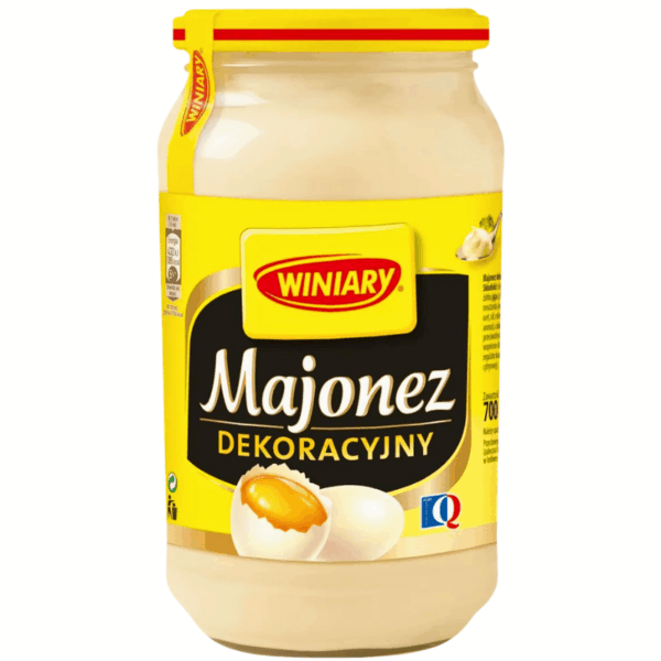 Winary majones dekoracyjny 700ml. Fyldig og kremet majones med mild smak, perfekt til salater, smørbrød, dressing og dekorering av kalde retter. Et populært valg i Øst-Europa for sin jevne konsistens og gode smak.