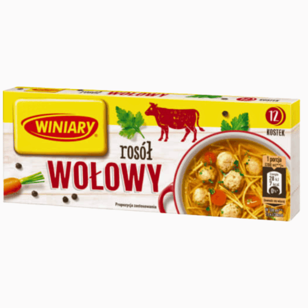 Pakke med 16 praktiske biffbuljong-terninger à 10 g fra Winiary – rik, dyp kjøttumami med løk og urtesmak. Perfekt til supper, sauser, gryteretter og risretter. Nettovekt: 180 g.