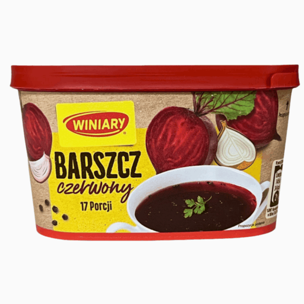 Winiary borsj er et suppekonsentrat med rik smak av rødbeter, ideell for å lage tradisjonell barszcz raskt og enkelt. Tilsett vann og varm opp. Vekt: 170g