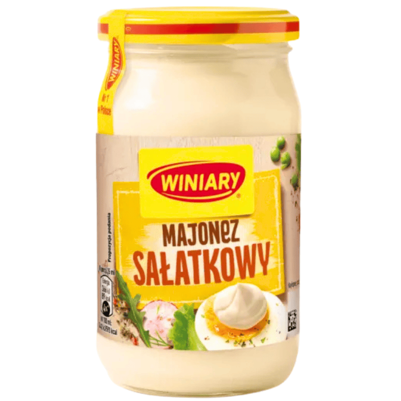 Winiary majonez sałatkowy 300ml. Lett og kremet majones spesielt utviklet til salater, med mild og balansert smak. Passer godt til potetsalat, coleslaw, smørbrød og som base for dressinger og kalde sauser.
